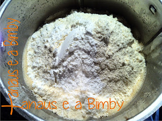 Juntei a farinha e o fermento e misturei 15seg, vel 4/5, ou mais uns segundos até ficar a massa toda bem misturada.