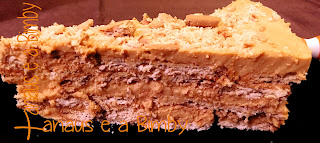Ter atenção que a última camada é de creme e convém levar bastante creme, portanto ter atenção com a divisão das camadas. Nesta fase gastei 2.5 pacotes de bolachas.