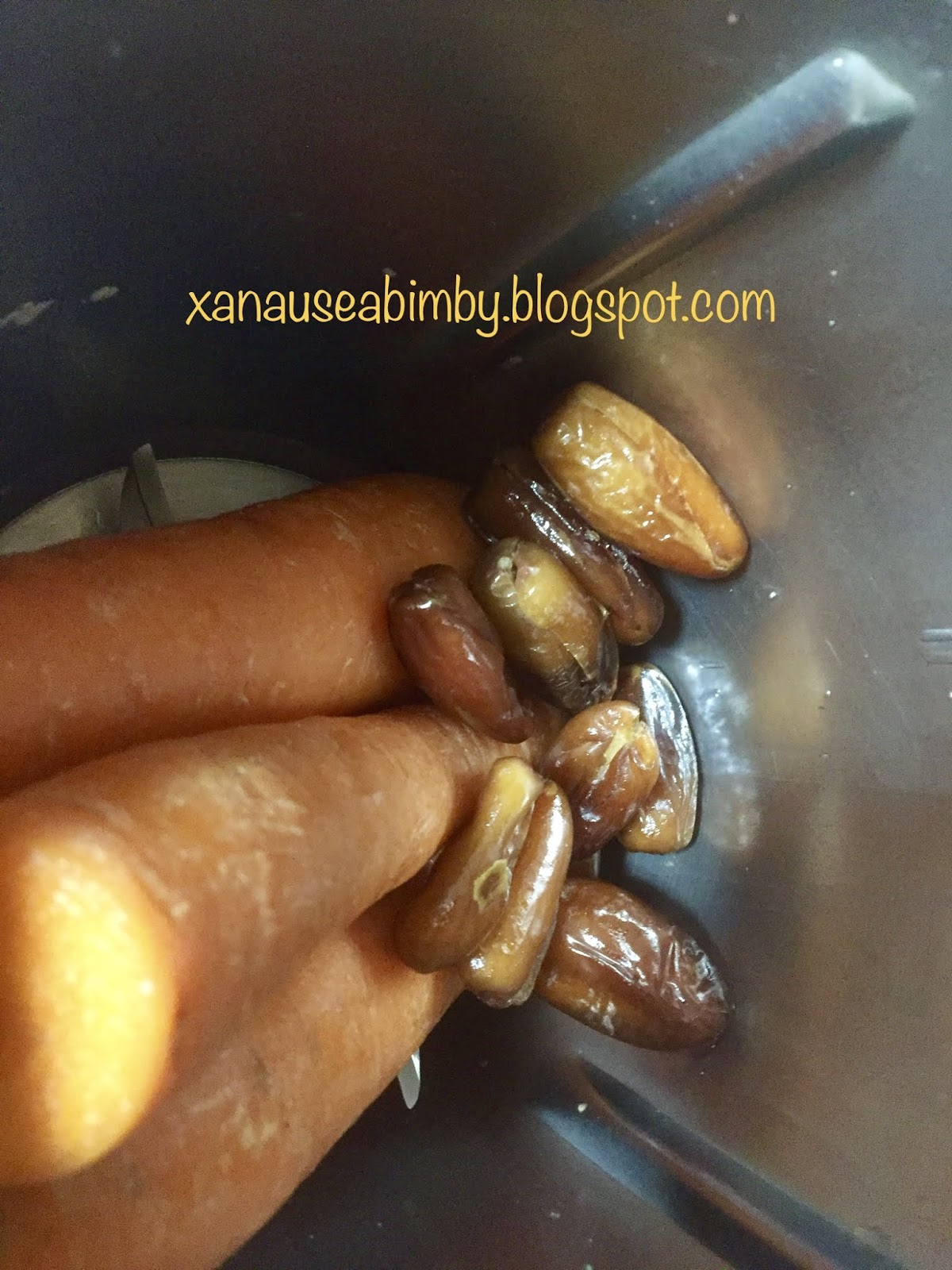 No copo coloquei as cenouras, gengibre e as tâmaras e programei vel 8, 10 seg.